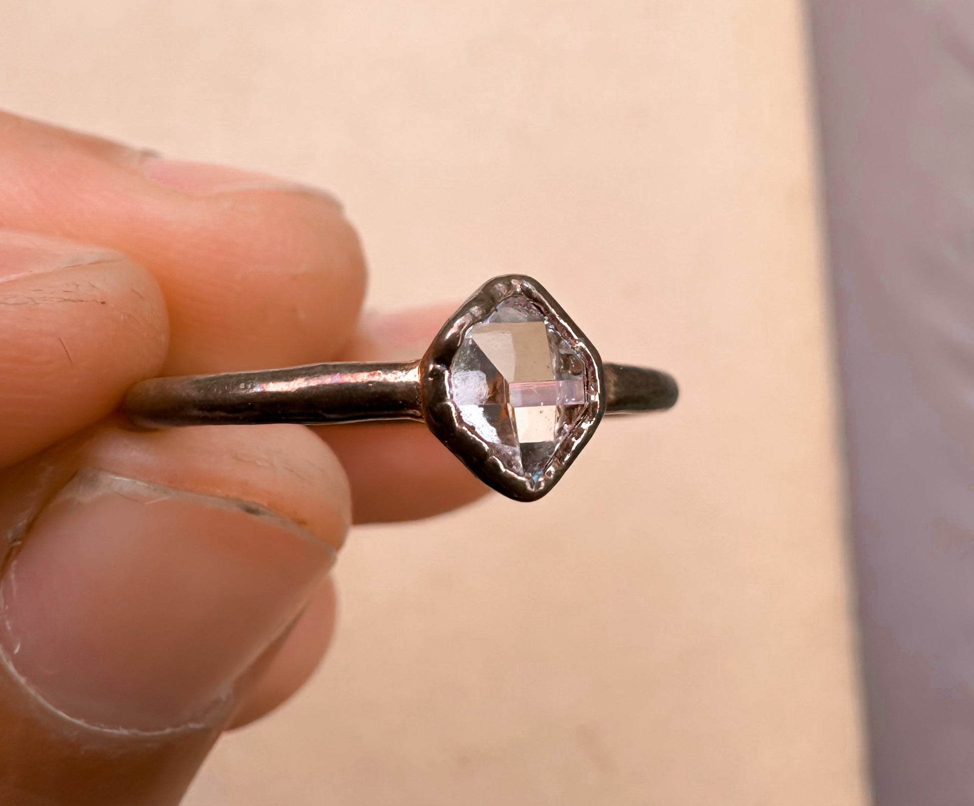 Copper Electroplated Ring w/ Herkimer Diamond Size 7.5