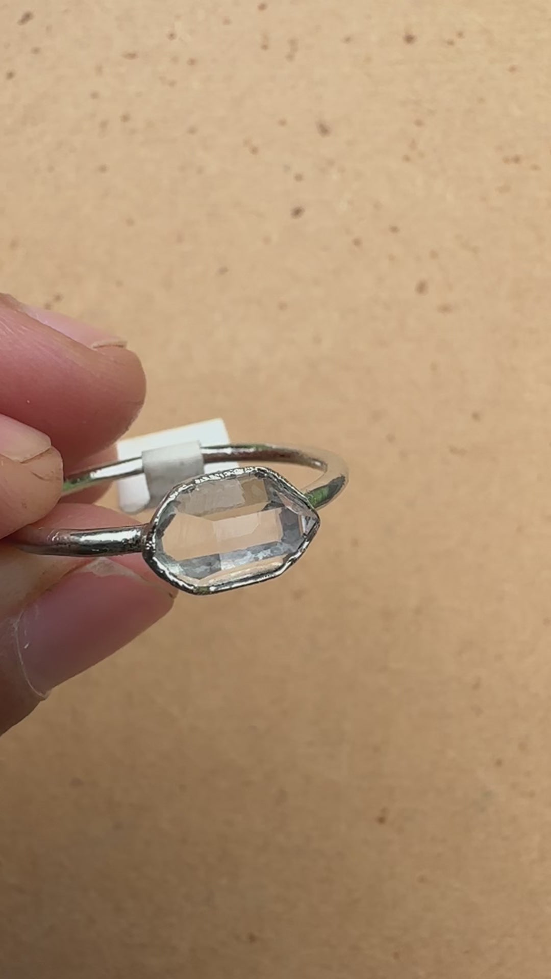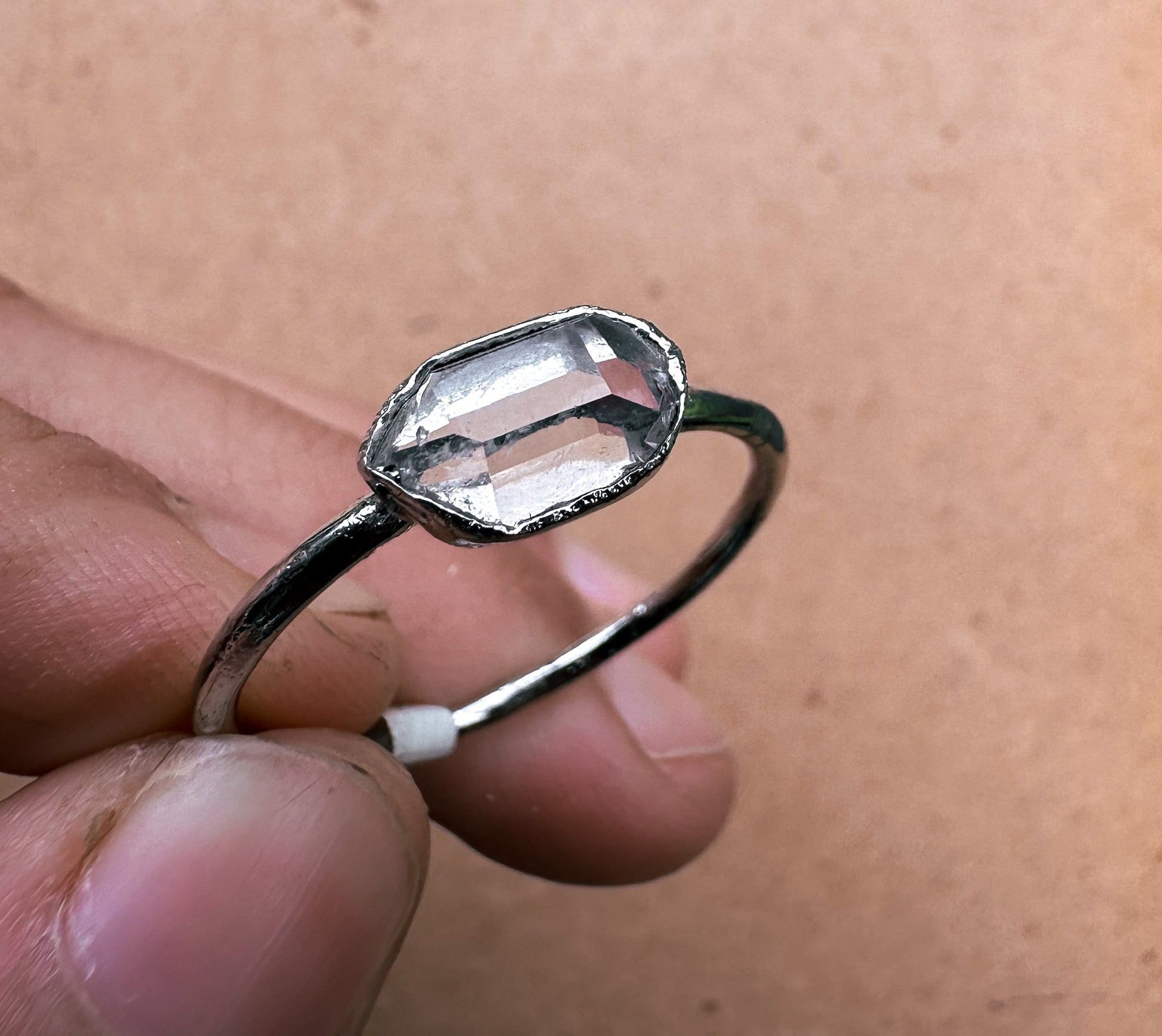 Palladium Coated (Platinum) Electroplated Ring w/ Herkimer Diamond Size 11.25